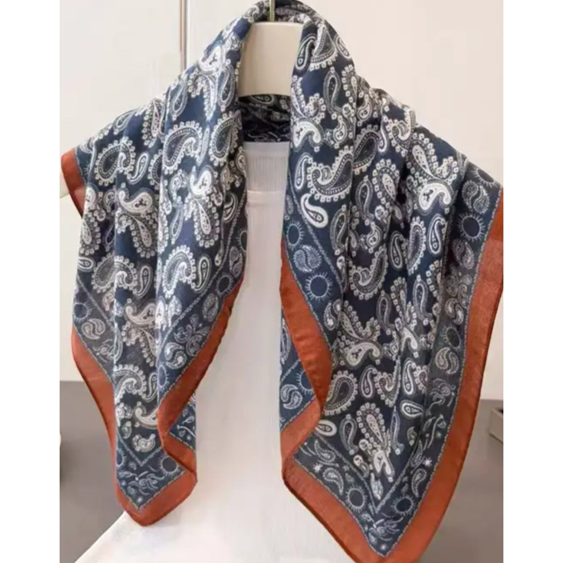 #foulardbleu #foulardcachemire #onykacollection #foulardcarre #modeboheme #accessoirechic #lookmediterraneen #foulardpolyester #stylefemme #scarfstyle