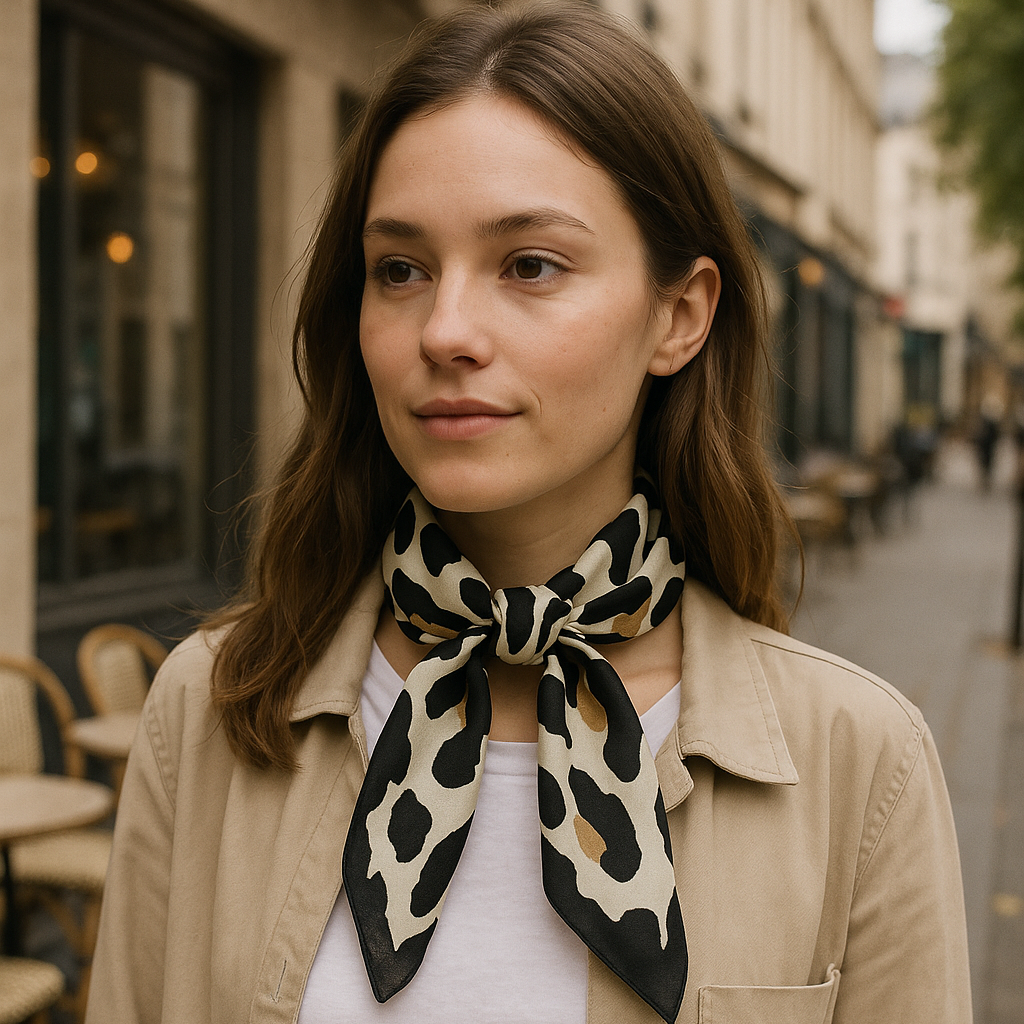 🧣 Foulard carré imprimé léopard – 100% viscose (68×68 cm)Apportez du caractère et une touche tendance à vos looks avec ce foulard carré imprimé léopard.