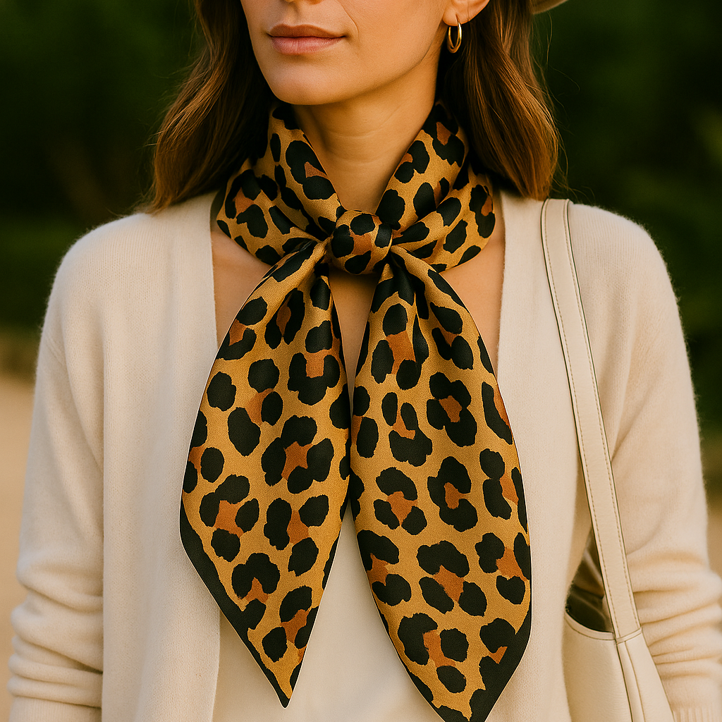 Foulard carré imprimé léopard – 100% polyester – Taille 70x70 cm – Accessoire mode femme chic
